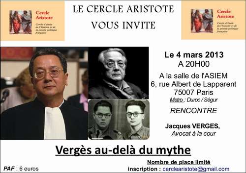 23h05 27 févr. 2013 Le Cercle Aristote reçoit Jacques Vergès Share Tweet Lien permanent Catégories : actualité, France et politique française 0 commentaire