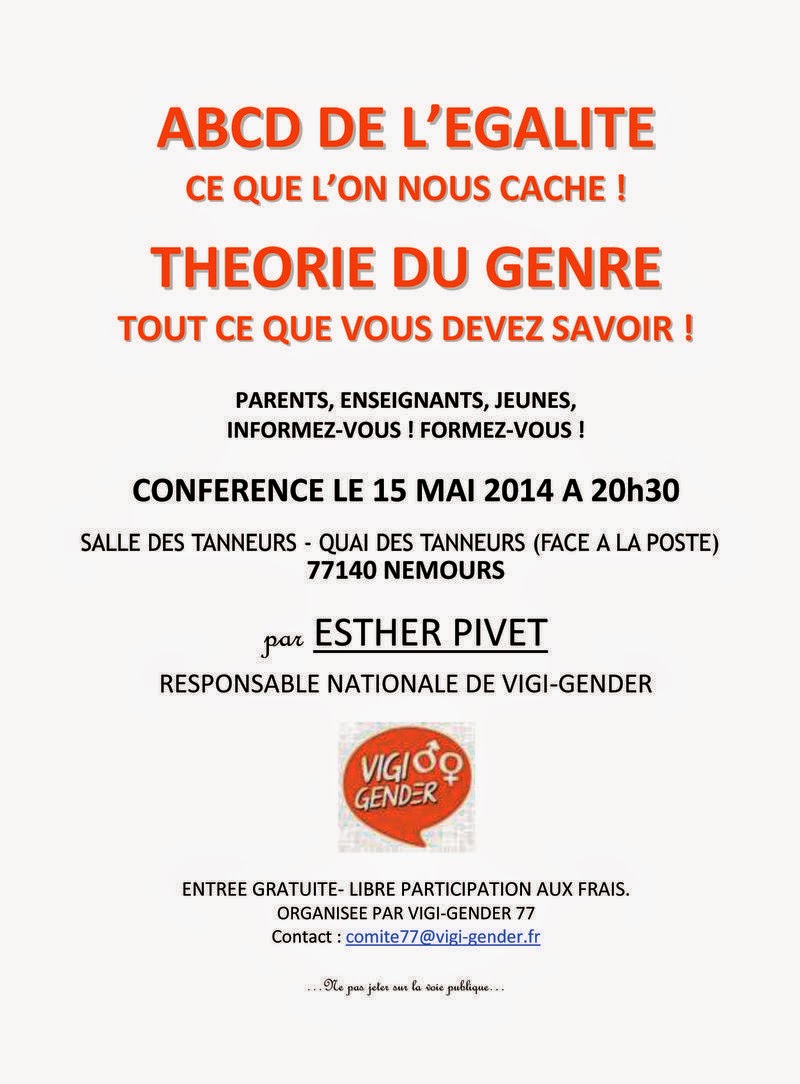 09h24 09 mai 2014 15 mai : conférence sur le genre à Nemours Share Tweet Lien permanent 0 commentaire