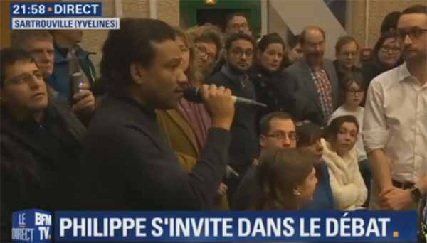 A Sartrouville (Yvelines), dans le cadre du Grand Débat National, Tepa interpelle le Premier ministre Edouard Philippe sur la loi Pompidou-Rothschild de 1973.