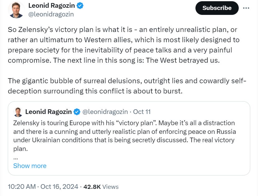 Le journaliste Leonid Ragozin est arrivé à une conclusion similaire à la mienne, selon laquelle le plan creux de Zelensky n’était probablement que le terrain propice à l’inévitable vente aux masses du cessez-le-feu:
