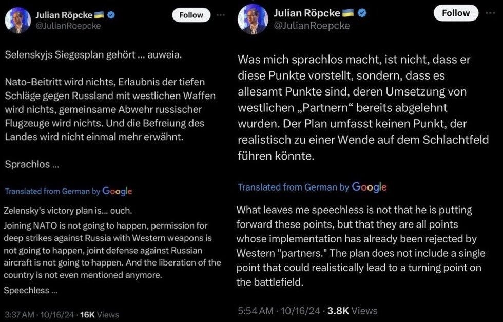 Nous resterons brefs et nous nous contenterons de mettre en évidence quelques-unes des vidéos les plus poignantes et les plus remarquables de la journée, qui se connectent de manière tangentielle à des questions plus vastes comme le « Plan de victoire » de Zelensky.