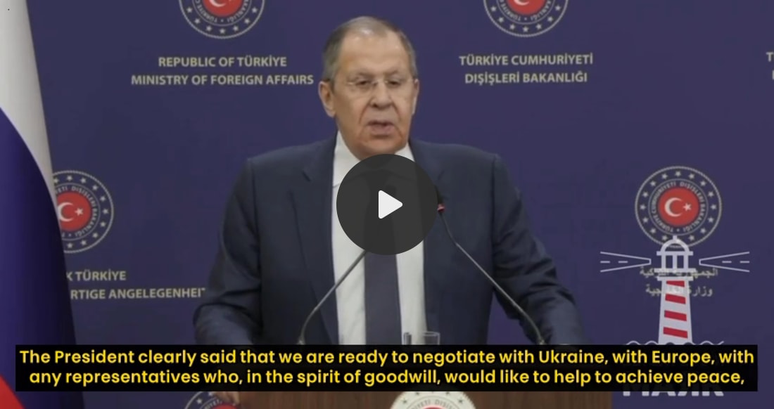 Lavrov a immédiatement poursuivi sur cette lancée lors de sa visite en Turquie, en déclarant qu’un cessez-le-feu ne sera autorisé qu’une fois que les États-Unis et la Russie se seront mis d’accord sur tous les termes les plus fondamentaux, qui ont été diversement articulés comme une compréhension des « causes profondes du conflit » :
