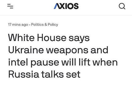 Deuxièmement, il convient de noter que même si ces pauses dans l’aide et le renseignement sont bien réelles, cela ne signifie pas qu’elles vont durer. L’équipe de Trump semble maintenant vouloir pousser l’Ukraine à négocier, et la Maison Blanche a insisté sur le fait que les pauses seront levées si l’Ukraine vient à la table des négociations :
