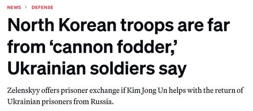 Pendant ce temps, les soldats ukrainiens combattant à Koursk décrivent les Nord-Coréens – autrefois surnommés « chair à canon » qui « feront défection dès qu'ils se battent » – comme des fantassins hautement qualifiés, courageux et motivés.