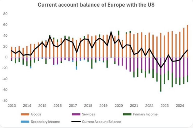 Bref, Donald Trump obtient un succès sur toute la ligne. Toutes ses revendications sont acceptées (même si les détails modèreront sans doute ce succès). Louis Vuitton, soucieux de son image outre-Atlantique, a déjà annoncé un deuxième atelier aux USA (le premier avait été inauguré sous le premier mandat Trump). Et comme le dollar a perdu plus de 10% par rapport à l’euro depuis le début de l’année, outre les recettes fiscales venues des douanes, le choc de prix devrait permettre aux USA de rééquilibrer en partie leur commerce extérieur avec l’UE, très largement déficitaire. Mais la question qui se pose, c’est de savoir si une telle issue était inévitable. Bien sûr, les rares défenseurs de l’UE l’avancent, mais c’est surtout l’argument de ceux qui privilégient leurs affaires, que ce soit le monde des entreprises, ou les pays dont les excédents étaient si élevés qu’ils étaient prêts à tous les compromis pour éviter un conflit.