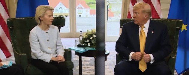 Même une partie des défenseurs habituels de l’UE a exprimé sa sidération face à l’accord signé par Ursula von der Leyen avec Donald Trump. Il faut dire que c’est une reddition en rase campagne : l’UE cède à toutes les demandes des USA. L’alliance européenne ne nous a donné aucune prise dans la négociation, affaiblissant notre main, au lieu de nous aider à peser. Voilà qui en dit long sur l’UE.