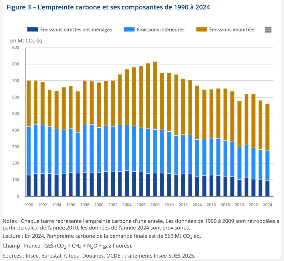 ▶️ Ce que l’INSEE appelle pudiquement les « émissions importées » est en réalité le cœur du problème : la part invisible de notre confort moderne. Car ce que nous ne produisons plus, d’autres le produisent pour nous. Cela pollue davantage — mais ailleurs…