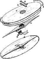 Cette planche ovale est parfois sertie, au-moins sur ses bords supérieurs et inférieurs, par ce que l'on nomme des orles métalliques, c'est-à-dire des gaines / bandes en fer destinées à préserver la planche, mais aussi, accessoirement, à donner des coups fatals et éviter le pourrissement du bois. Ces orles sont d'une grande utilité pour les protohistoriens, puisqu'ils permettent par la même occasion de connaître l'épaisseur extérieure du bouclier. Épaisseur souvent très réduite : dans les cinq millimètres.Le guerrier tient de la main gauche son bouclier à l'aide d'une poignée horizontale, nommée "manipule". Ce manipule est placé au centre de gravité de ce bouclier de façon à favoriser son utilisation rapide et à minimiser son poids - léger, dans les quatre kilogrammes en moyenne, ce qui n'est rien en comparaison d'autres boucliers antiques contemporains. Le manipule, en bois, parfois doublé de fer, offre ainsi une préhension redoutable, pour peu que l'on en comprenne le fonctionnement.